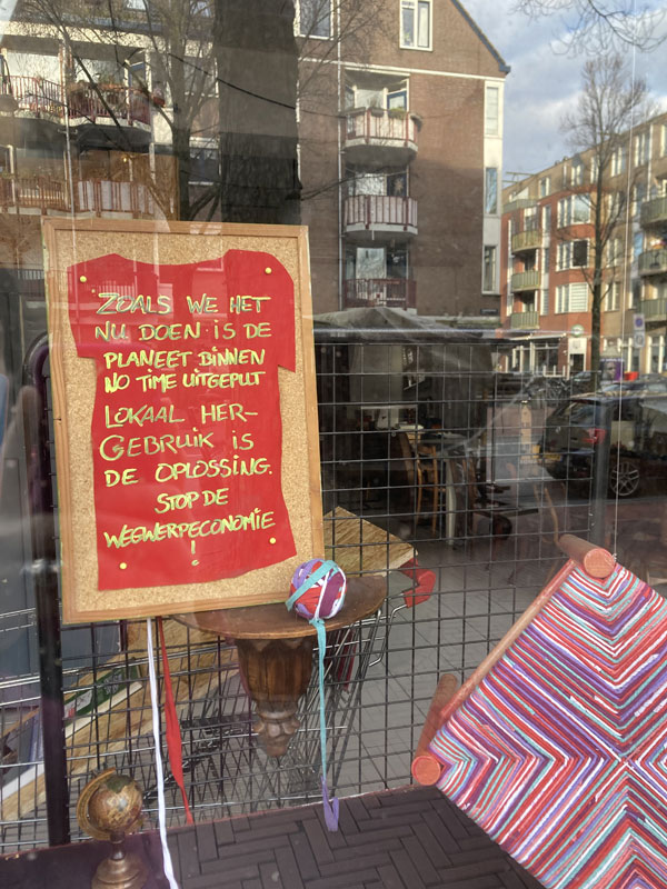 de etalage van het Afvalpaleis met een kruk van de amsterdamse stoelenmatter